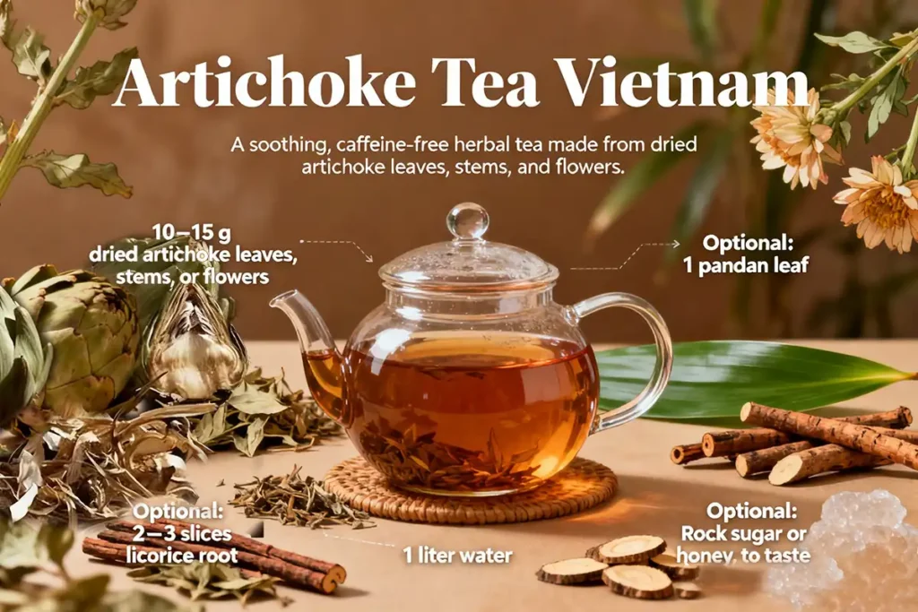 - Concentrated Liquid Extract: Artichoke Tea Vietnam extract is often used by cafés or street vendors. Diluted in water (hot or cold), it’s a fast route to a refreshing cup, though the flavor differs slightly from homemade infusions.