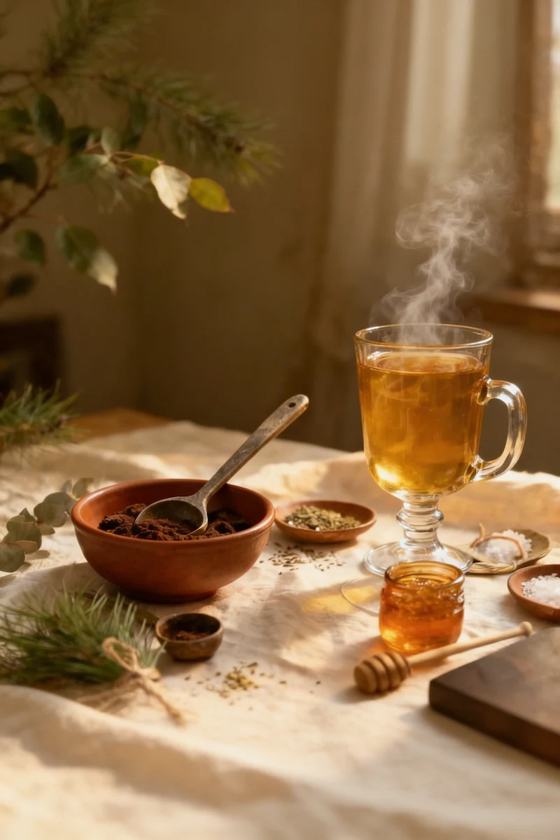 • 1 cup hot filtered water or brewed pine needle tea (75–80°C)